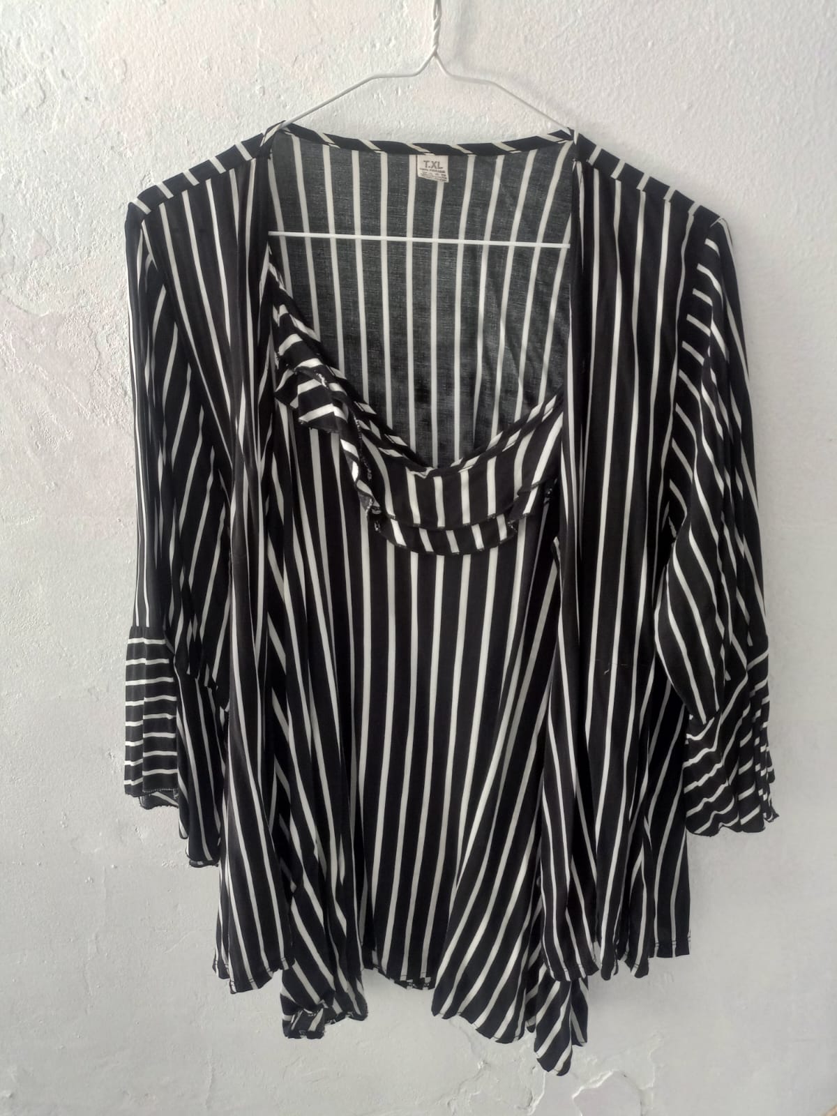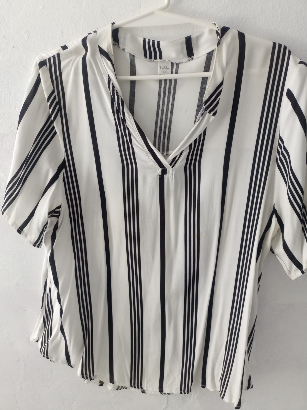 Blusa Mujer de Fibrana 100% - Rayas Verticales - Blanco y Negro - Talle L
