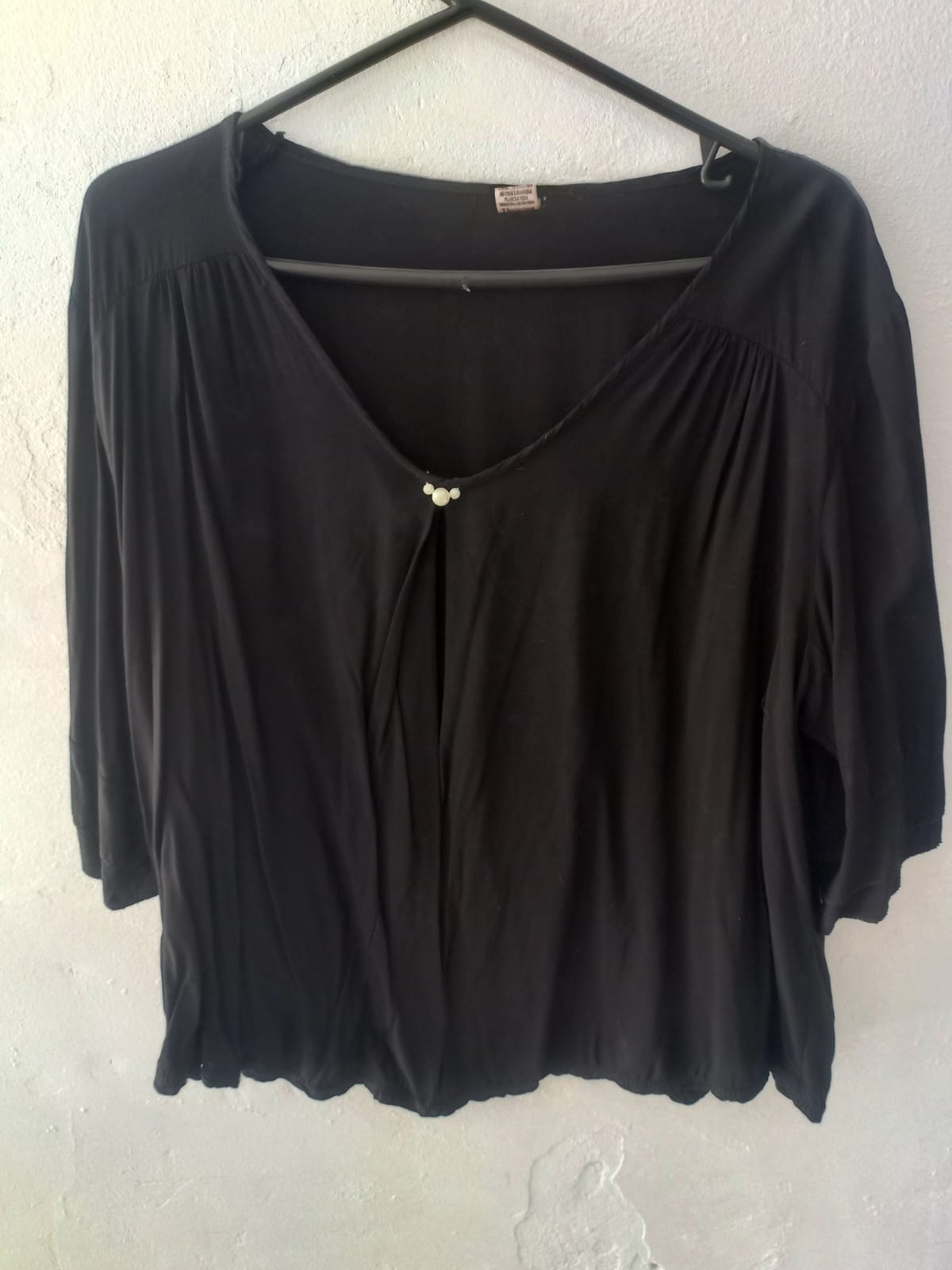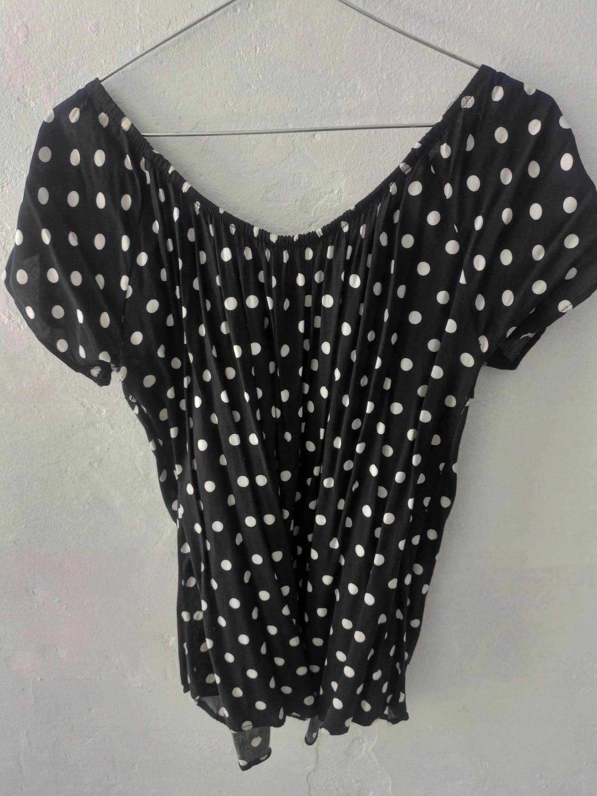 Blusa Escote redondo en Algodón 100% - Negra con lunares - T5