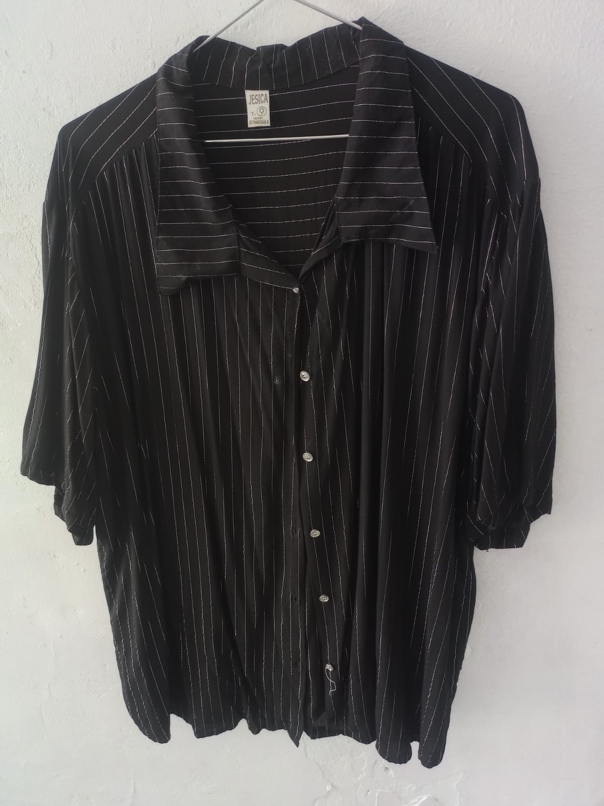 Camisa de Mujer Jesica de Algodón 100% - Mangas cortas - Rayitas Platedas - Negra - T9