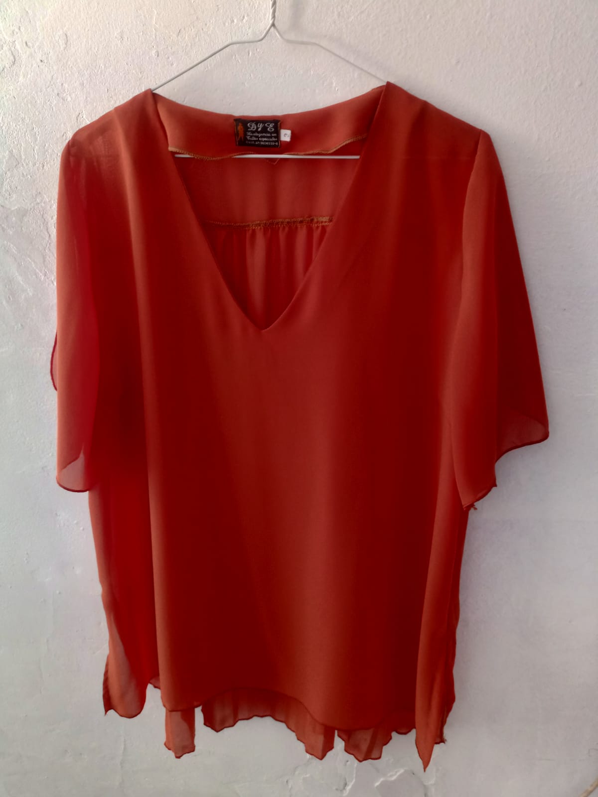 Blusa de Mujer D & E en Gasa de Chifón - Talle Especial - Color Durazno