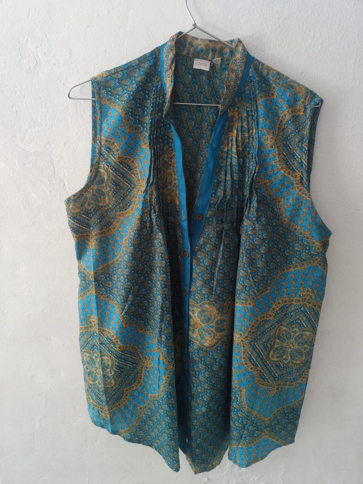 Camisa Musculosa de Mujer Rayón 100% con cuello Mao - Turquesa estampado Hindú - Talle M/L